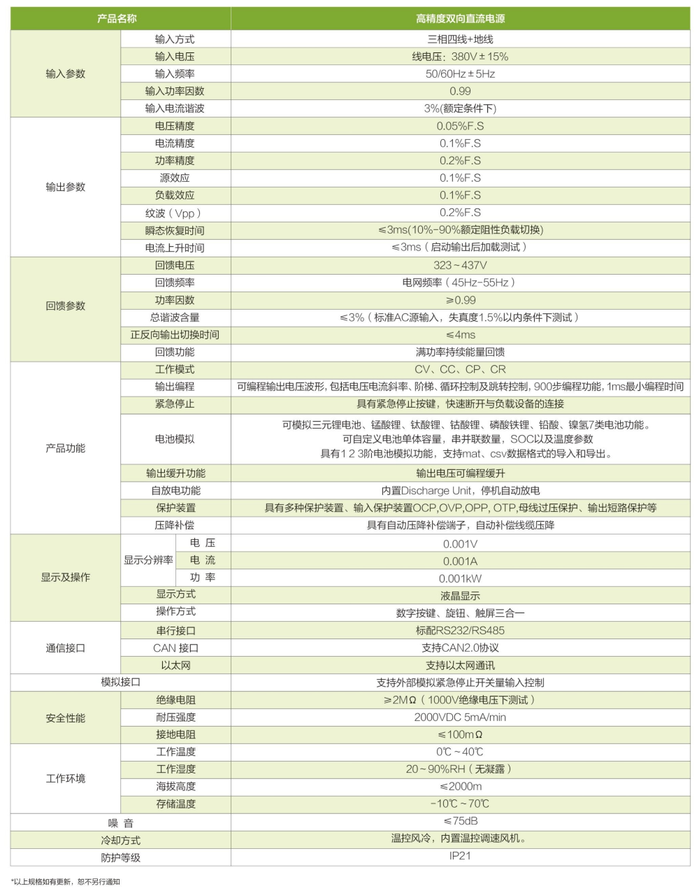 ■ 自适应电网回馈功能, 满功率持续能量回馈;