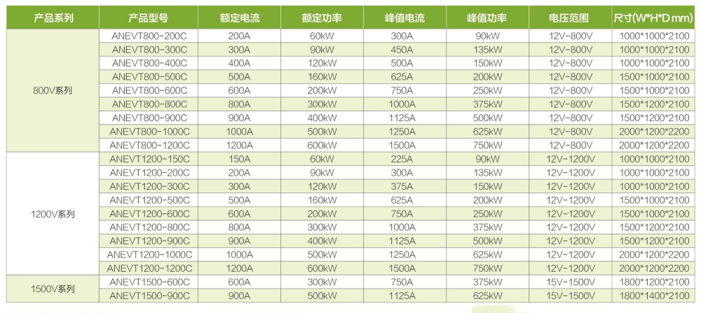 ANEVT系列高精度双向直流测试电源是集成了高频PWM整流技术、双向DC变换技术以及FPGA数字控制技术的高技术产品。具有自适应电网回馈功能,可满足全功率段持续能量回馈电网。同时具有正反向输出无缝切换功能,实现能量传输的无缝对接。双环路控制技术,实现了超高控制精度,以及对客户设备应用快速的响应,保证设备测试稳定性和测试数据的准确性。超宽范围的电压电流输出能力,丰富的输出编程测试功能,更好满足客户不同产品测试的需求。设备还具有多重保护编程功能,能够更好的保护客户设备在测试过程中的安全性。同时诸多产品附加功能提升了设备运行的稳定行和可靠性。