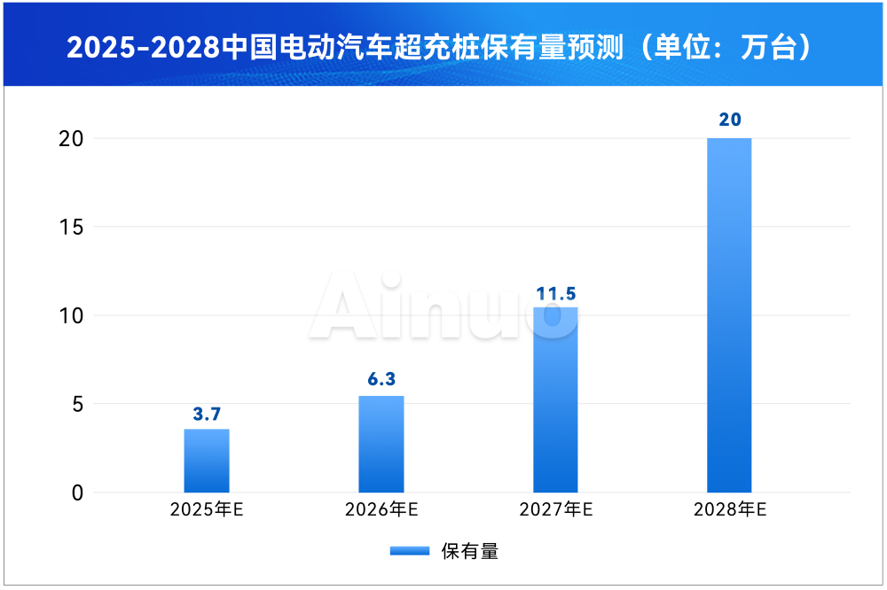随着我国新能源汽车渗透率突破50%,超级充电桩行业加速向 “高电压、大功率” 技术方向升级。2025年国家四部委联合发布《关于促进大功率充电设施科学规划建设的通知》,明确到2027年底全国250kW以上大功率充电设施超10万台,2025年为攻坚阶段。据调研机构数据显示,2025年国内超充桩增速达90%,高增长态势将持续,行业预计2028年国内超充桩将突破20万台。