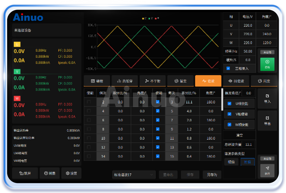 艾诺仪器深耕测试行业多年,深度了解充电模块及充电桩研发生产过程中的测试难点,为之专项研发推出了MW级大功率测试方案ANBGS,以‘’大功率测试,智能化操作,高精度验证‘’为核心,助力企业高效通过认证。